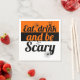 Mangez, buvez et soyez effrayant typographie audacieuse Halloween papier serviette. Un design moderne d'halloween montrant le texte "Mange, bois et sois effrayant" une sorcière d'halloween, chauves-souris et araignées sur bandes orange, noir et blanc.