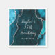 Cette serviette d'anniversaire élégante et glamour est ornée d'un arrière - plan en marbre d'agate bleu turquoise aux accents de parties scintillant faux argent. Le texte combine écriture manuscrite et polices sans serif modernes pour un look élégant et sophistiqué. Ce sera parfait pour les fêtes d'automne et d'hiver.