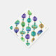 String of whimsical mardi gras beads in green, gold, blue, purple and aquamarine on cocktail napkins