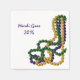 Parfait pour une fête de Mardi Gras. Doré violet et perles vertes au fond et ballons en haut à gauche. Tout le texte peut être customisé. Des serviettes et des plaques de papier sont disponibles ainsi que des autocollants