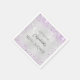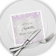 Un fond argenté orné de paillettes violettes, lavande et d'un papillon. Personnalisez avec un nom et une date.