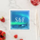 Élégantes serviettes en papier avec monogramme personnalisable contre un magnifique ciel étoilé et arrière - plan de glacier.