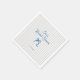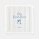Serviettes pour la fête de mariage fantaisistes et fantaisistes avec un beau nœud dessiné à la main dans un style amusant et ludique avec un fond rayé verticalement bleu clair. La police manuscrite décontractée capture parfaitement l'excitation et la joie de l'occasion.
