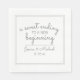 Des serviettes de réception en papier blanc, modernes et élégantes, avec du texte, "Une fin douce à un nouveau commencement" et un espace pour ajouter les noms du couple et la date mariage.