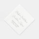 Cet évènement moderne et élégant ou la serviette mariage dispose d'un simple arrière - plan blanc avec du texte noir. Les noms du couple sont imprimés dans une police de script. La date et l'emplacement du mariage sont imprimés ci-dessous.