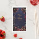 Une invitation de mariage marine bordeaux avec une symphonie de pivoines rouges bordeaux profondes ornées de pulvérisation dorée et de contours dorés scintillants rassemblés autour d'un fond de lavis à l'aquarelle bleu marine avec vos noms en grands caractères dorés rustiques avec une police sans empattements majuscule annonçant vos détails.