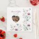 Belles serviettes mariages personnalisées. Une élégante aquarelle de prune fleurs violettes avec feuillage vert sauge et bleu poussiéreux et design floral. Ajoutez vos noms photo à ces serviettes dans la zone personnalisée. Elles sont belles pour un dîner de réception de mariage ou pour une douche nuptiale ou une fête de bachelorette.