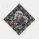 Ces serviettes personnalisées sont décorées sur le thème de l'amour de la Saint-Valentin ou du mariage avec un cadre photographique. L'arrière - plan est un motif de coussin noir avec diamants et carrelage. Un échantillon de photo d'un couple marié ou engagé est placé dans le centre.