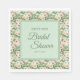 Serviettes en papier personnalisées pour la douche de la mariée avec des fleurs aquarelles vert menthe et pêche, avec le nom de la future mariée et la date de la douche de mariage. Contactez-moi pour obtenir de l'aide pour vos personnalisations ou pour demander d'autres produits Zazzle assortis ou coordonnés pour votre fête.