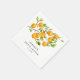 Thème mariage champêtre aux agrumes, serviette en papier avec illustration aquarelle d'oranges sur un arbre fruitier. Parfait pour votre célébration estivale.