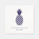 Ces serviettes design sont le choix idéal pour un mariage élégant ou tropical ! Un ananas bleu marine apparaît avec vos noms et la date du mariage dans le texte correspondant.
