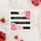 Serviette En Papier Mariage d'aquarelle rose rayures noires