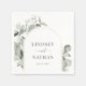 Elégante aquarelle eucalyptus mariage serviettes en papier avec cadre faux or arche et police calligraphie.