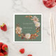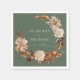 Ces élégantes serviettes en papier de mariage sont ornées d'aquarelle peinte à la main, de feuilles en terre cuite et orange, de dahlias crème et beige, et de beaux roses couleur rouille sur un arrière - plan sage avec le prénom et la date mariage de la mariée et du marié. Trouvez les articles correspondants dans la collection Sage Autumn Romance.