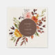 Feuillage rustique d'automne et cadre floral, serviettes en papier personnalisées. Le modèle de style design moderne fournit des lignes pour les noms et la date sur cadre rond marron.