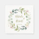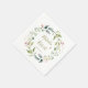 Serviettes en papier de mariage élégantes pour votre réception. Ce design présente une couronne de fleurs roses blanches et un feuillage verdoyant. Police, couleur et taille peuvent être modifiées.