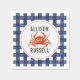 Serviettes en papier illustrant un crabe sur un arrière - plan en vichy bleu. Personnalisez les noms.