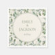 Elégant sauge vert eucalyptus feuilles sur des serviettes en papier mariage couleur crème. Inclut les noms de la mariée et du marié et la date du mariage. Le texte est personnalisable. Contactez-nous pour obtenir de l'aide sur la personnalisation ou pour demander des produits de coordination.