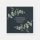 Belle délicate feuillage d'eucalyptus feuillage mariage serviette décoration de soirée design. Moderne élégant sur tendance sauge vert, noir, bleu marine et blanc élégant collection contemporaine rustique. Idéal pour les mariages de printemps, d'été, d'automne ou d'hiver.