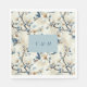 Jolies serviettes en papier avec de belles fleurs blanches et bleues. Zone bleu clair pour votre texte.