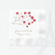 Serviettes en papier pour desserts mariages avec un design original par Mango Moon Studio d'une branche d'arbre aux fleurs de cerisiers en rouge. Ajoutez les noms du couple et la date du mariage.