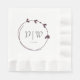 Serviettes en papier élégantes pour votre événement mariage qui présente une couleur d'aubergine tendance, une couronne de coeur simple avec les initiales de la mariée et du marié et la date du mariage en lettres stylisées. Modifiez et remplacez les initiales et la date par les vôtres. Sélectionnez la couleur de votre serviette de papier.