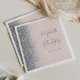 Le bord gauche de ces élégantes serviettes mariages modernes présente un style de parties scintillant en faux argent. Le texte personnalisable combine écriture manuscrite grise et polices de cuivre sur une grande esperluette sur un arrière - plan rose vif.