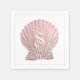 Très joli coquillage faux rose/mauve avec motif monogramme blanc avec serviette arrière - plan blanche pour votre mariage. Si joli et élégant.