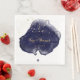 serviettes mariages avec une tache d'aquarelle bleu marine avec plaque d'encre or et vos noms et date numérique en lettres d'or.