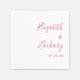 Ces serviettes mariages simples et modernes présentent du texte magenta aligné à la marge droite sur un arrière - plan blanc. Ajoutez les noms de la mariée et du marié dans la calligraphie élégante de l'écriture manuscrite.