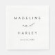 Serviette Mariage moderne en noir et blanc avec les noms des couples et calligraphie élégante et avec date de l'événement.
