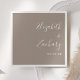 Ces serviettes mariages simples et modernes présentent du texte blanc aligné à la marge droite sur un arrière - plan taupe. Ajoutez les noms du couple dans la calligraphie stylisée d'écriture manuscrite.
