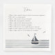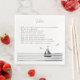 Élevez votre réception de mariage avec ces serviettes en papier de charme, ornées d'histoires de table sur le couple heureux. Affichant un design minimaliste avec un voilier aux teintes bleu-gris apaisantes et des rayures nautiques classiques, ces serviettes exsument l'élégance intemporelle du style côtier de la Nouvelle-Angleterre. Parfait pour ajouter une touche personnelle à votre décor de table tout en divertissant vos invités.