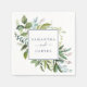 Ces serviettes en papier mariage verdoyantes sont parfaites pour une élégante réception de mariage en plein été. Le design botanique présente un agencement luxuriant d'eucalyptus couleur aquarelle peint, de verdure et de feuilles verts avec de subtils ressorts de fleurs roses rousses. Personnalisez les serviettes avec les noms de la mariée et du marié. Ces serviettes peuvent être utilisées pour la réception de mariage, le dîner de répétition, la fête de fiançailles et plus encore!