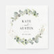 Une couronne d'eucalyptus avec feuillage verdoyant, Initiales de la mariée et du marié, Vous pouvez changer le libellé, la taille du texte, la couleur et la police.