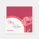 Ce design est composé de serviettes en papier mariage d'été aux motifs floraux roses et oranges audacieux, avec des polices de caractères élégantes pour le nom du couple et des polices propres pour les détails.