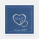 Cette serviette en papier est présentée en couleur marine et blanche avec les deux coeurs de pierres en cristal en couleur argentée, avec des exemples d'initiales monogrammes. Customisez cet objet et modifiez les initiales et la date à votre place.
