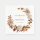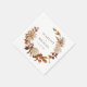 Ces élégantes serviettes en papier de mariage sont ornées d'aquarelle peinte à la main, de feuilles en terre cuite et orange, de dahlias crème et beige, et de beaux roses couleur rouille sur un arrière - plan blanc avec le prénom et la date mariage de la mariée et du marié. Trouvez les articles correspondants dans la collection White Autumn Romance.