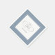Elégante serviettes de cocktail bleu et blanc mariage et fiançailles, avec une bordure en bleu roux et romantique, qui comprend une petite bordure blanche et chic et deux coeurs entrelacés qui portent les prénoms du couple sur un arrière - plan blanc et croustillant. Personnalisez les détails du mariage modèle avec vos noms et la date du mariage en lettres grises au fusain et en script. Ajoute à merveille à votre événement mariage ou anniversaire ! Assurez-vous de voir la collection pour les produits correspondants !
