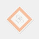 Elégante pêche & blanc mariage & fiançailles serviettes à cocktail dispose d'une bordure en pêche romantique qui comprend une petite bordure blanche chic en blanc immaculé et deux coeurs entrelacés qui tiennent les prénoms du couple sur un arrière - plan blanc immaculé. Personnalisez les détails du mariage modèle avec vos noms et la date du mariage en lettres grises au fusain et en script. Ajoute à merveille à votre événement mariage ou anniversaire ! Assurez-vous de voir la collection pour les produits correspondants !