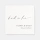 Des serviettes mariages modernes au design simple et minimaliste noir et blanc avec "ivrogne dans l'amour" dans une typographie élégante avec une police serif traditionnelle classique. La disposition minimaliste fait de ces serviettes un endroit idéal pour un mariage formel, une fête de fiançailles ou une douche nuptiale.