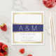 Vos propres initiales dans une bande bleue et faux or, et les noms dans un style de police mince... avec le texte personnalisé "Merci pour célébrer avec nous"... pour une belle fête de mariage