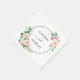 Cette serviette en papier mariage présente des fleurs d'aquarelle peintes dans un feuillage rose, blanc et vert, avec un cadre circulaire. Pour une personnalisation plus avancée de cette conception, cliquez sur le lien "Customiser plus loin".