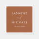 Ajoutez une touche personnalisée à votre réception de mariage, à votre fête de fiançailles ou à votre dîner de répétition avec ces serviettes de mariage personnalisées et modernes. Les serviettes de mariage personnalisées affichent vos noms et votre date de mariage en lettres modernes avec une écriture manuscrite blanche sur un arrière - plan en terre cuite. Les serviettes mariage en terre cuite, simples mais élégantes, sont parfaites pour votre mariage moderne.