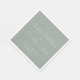 Cet événement moderne et élégant ou la serviette mariage dispose d'un simple arrière - plan vert eucalyptus avec texte blanc. Les noms du couple sont imprimés dans une police de script. La date et l'emplacement du mariage sont imprimés ci-dessous.