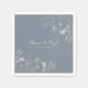 Elégante, vintage, florale personnalisées serviettes mariage bleu poussiéreux avec perches sophistiquées et écriture manuscrite simple.