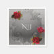 Serviette En Papier Mariage Fleurs Rouges Ornementales Argentées Vinta