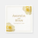 Serviettes mariage florales de rose jaune moderne // Cette serviette mariage moderne à fleurs est idéale pour votre décoration mariage. Un élégant décor de table avec deux belles roses jaunes dans deux coins. Le texte est un script moderne. L'arrière - plan est blanc. Vous pouvez facilement customiser tout le texte - personnalisez-le avec le nom de la mariée, le nom du marié et la date. Ces serviettes accompagnent d'autres articles de la collection de mariages bleu nuit rose jaune.