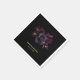 Serviettes mariages noires élégantes aux motifs floraux violets et roses.