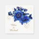 Ces jolies serviettes en papier mariage de saison allient des images de bouquet floral bleu vif et des ornements tourbillonnants d'or avec de minuscules confettis d'or. Les noms des mariés et des mariés apparaissent dans le script or correspondant sous l'image. Tout est placé sur un arrière - plan blanc et immaculé. Ces serviettes correspondent aux invitations de mariage et autres produits mariages dans notre magasin.